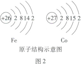 (3)如图 2,铁原子与钴原子具有相同的