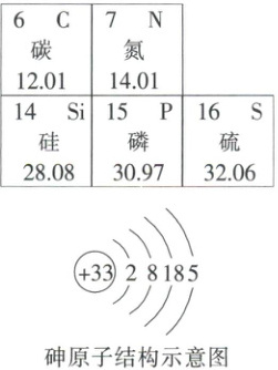 (3)砷元素与上图周期表中____(填元素符号)元素的化学性质相似。