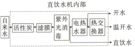 6. 目前许多学校安装了直饮水机,只要将它与自来水连接,便可以除去水中的部分杂质得到直饮水。某品牌直饮水机的工作原理如下图所示,下列说法正确的是(