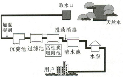 ,使水逐渐澄清。(3) 生产自来水时,“投药消毒”过程中发生了