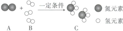 11. 氨气是一种重要的化工原料。下图是氮气和氢气反应生成氨气$(NH_{3})$的微观示意图,请据图回答问题。