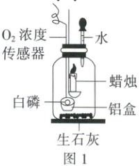 ②待蜡烛自动熄灭(蜡烛有剩余),装置冷却后,在 $ t_1 $ 时,将滴管中的水全部滴入广口瓶,铝盒中的白磷开始燃烧。