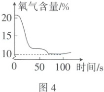 (4) 小明对小红的结论提出疑问,设计了图 3 所示装置,对燃烧过程中的氧气含量进行测定,得到图 4 所示图像。结合图像分析,“可燃物与氧气接触”应准确地表述为