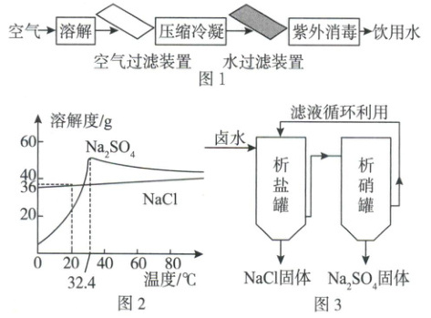 ① 水能用于维持生命体的新陈代谢。空气制水机能充分利用大气中的水分制出饮用水,主要过程如图1所示。图中被过滤装置除去的有害物质的直径