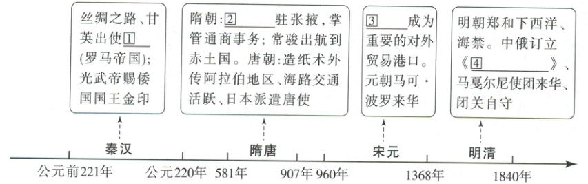 ①大秦 ②裴矩 ③泉州 ④尼布楚条约