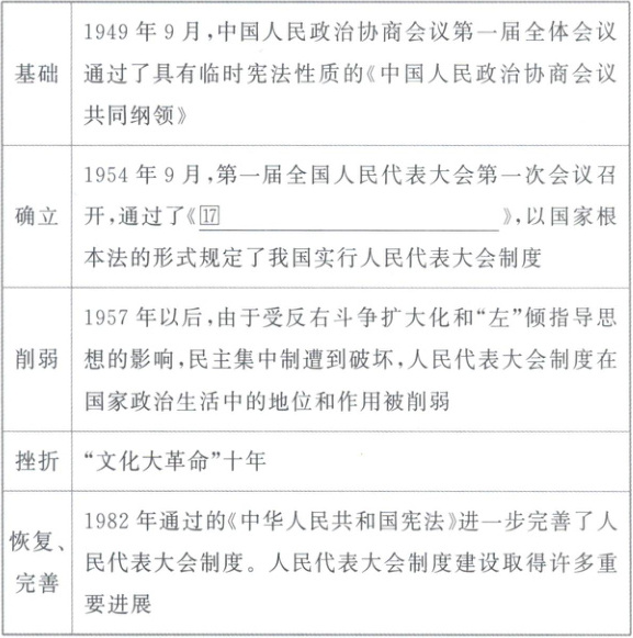 ①人民代表大会制度建立后,社会主义民主与法制建设取得了重要进展,促进了我国社会主义工业化建设和⑱