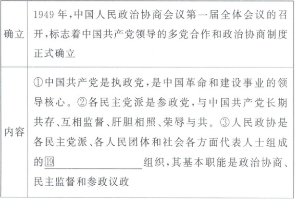 阅读教材第三目($P_{18}$~$P_{21}$)。思考:中华人民共和国的政治制度有哪些?各是如何发展完善的?其主要内容及历史意义是什么?
