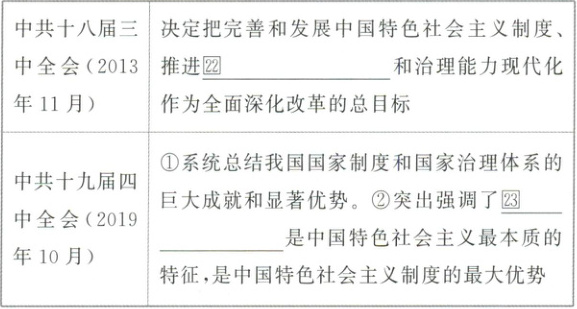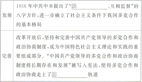 ⑮人民代表大会 ⑯人民 ⑰中华人民共和国宪法 ⑱社会主义改造 ⑲爱国统一战线 ⑳长期共存 ㉑制度化 ㉒国家治理体系 ㉓中国共产党领导