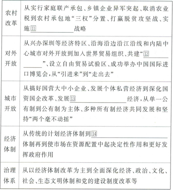 ⑤土地改革 ⑥社会主义 ⑦论十大关系 ⑧改革开放 ⑨小康社会 ⑩国家治理体系 ⑪乡村振兴 ⑫一带一路 ⑬混合所有制 ⑭社会主义市场经济