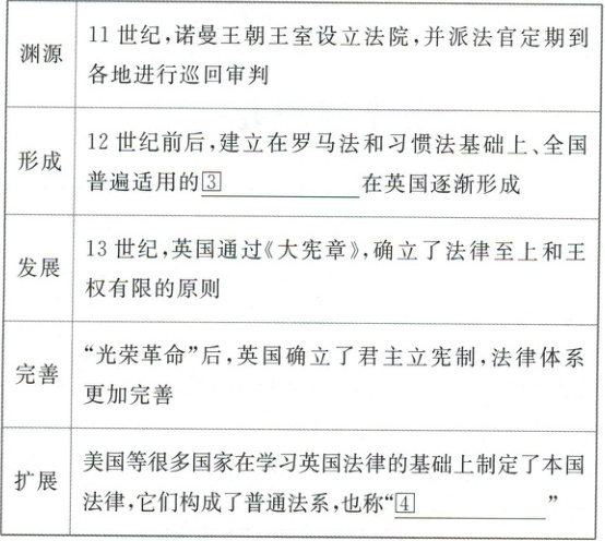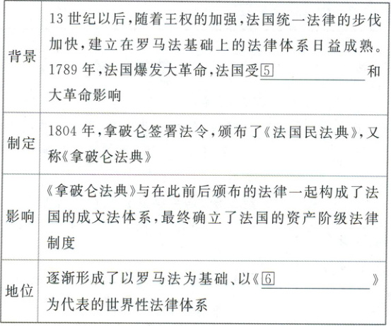 ①成文法 ②习惯法 ③普通法 ④英美法系 ⑤启蒙思想 ⑥法国民法典