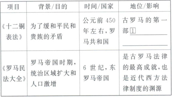 阅读教材第一目$(P_5₀、$P_5_1)。思考:罗马法形成发展有哪些历史阶段?其内容和地位如何?两大法系是怎样形成的?两大法系又有哪些异同?