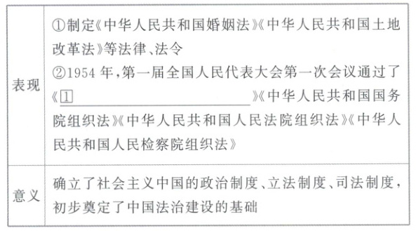阅读教材第一目($P_{55}$~$P_{57}$)。思考:新中国法治建设经历了哪些历史阶段?每一阶段的特征是什么?