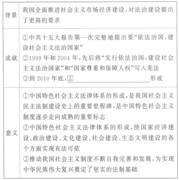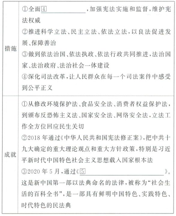 ①中华人民共和国宪法 ②有法可依 ③中国特色社会主义法律体系 ④依法治国 ⑤中华人民共和国民法典