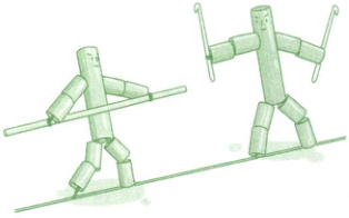 将鞋线一松一紧,那竹节人就手舞之、身摆之地动起来。两个竹节人放在一起,那就是搏斗了,没头没脑地对打着,不知疲倦,也永不会倒下。