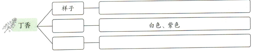 (2)[教材变式题]课文是怎样描写丁香的?把下面的思维导图补充完整。