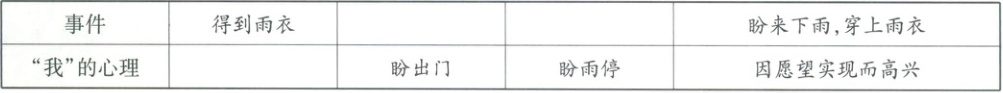(1)根据事情发展顺序,把课文描写的事件和“我”的心理填在上面的表格里。