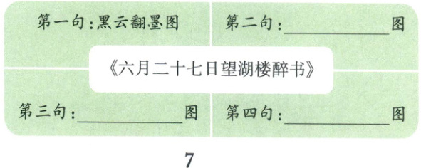 之情。(3)[教材变式题]《六月二十七日望湖楼醉书》一诗中的诗句分别描绘了怎样的画面?把下面思维导图补充完整。