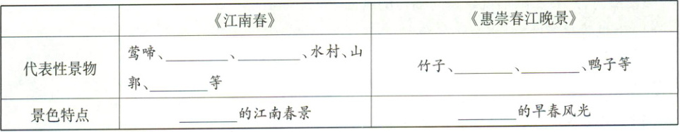 。(2)[教材变式题]两首古诗的前两句分别抓住哪些景物来描写春景?填写下面的表格。