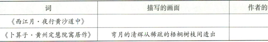 (4)[语文要素][教材变式题]从两首词所写的画面想开去,完成下面表格。