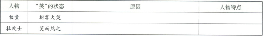 5. 〔新题型〕《书戴嵩画牛》中有两处写到了“笑”,请根据所学知识,补充表格。