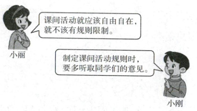 小丽的观点错误。社会规则是人们享有自由的保障,课间活动自由自在的同时也需要遵守规则,规则划定了自由的边界,遵守规则才能保证课间活动的有序、安全进行。