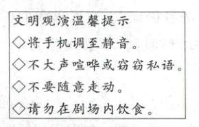17. 日常生活中特定场所的行为规范往往体现着对人的文明修养的要求。下面的剧院“文明观演温馨提示”体现的文明修养的要求是(