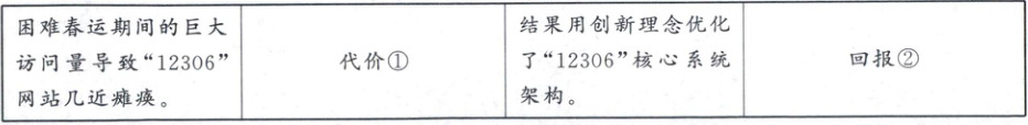材料一 “12306”网站在上线初期,遇到春运期间巨大访问量,几近瘫痪。中国铁道科学研究首席研究员单杏花住进值班室,白天带领团队跟踪系统运行状况,编写优化策略;晚上对优化的内容进行测试,直到凌晨三四点钟才能休息。她带领团队不断用创新理念追赶时代步伐,优化调整“12306”核心系统架构。她先后获得“全国三八红旗手”“最美奋斗者”“最美铁路人”等荣誉。2024 年 12 月 9 日,中共中央宣传部授予她“时代楷模”称号。