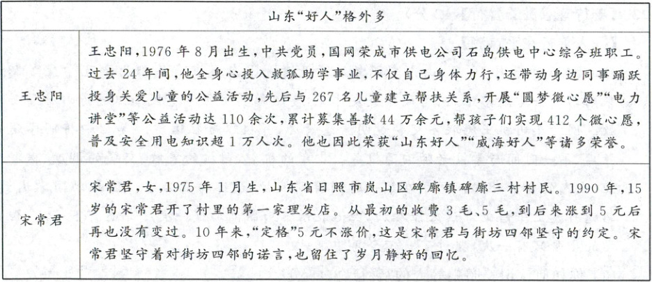 (1) 这些“山东好人”,“好”在哪里?(4分)