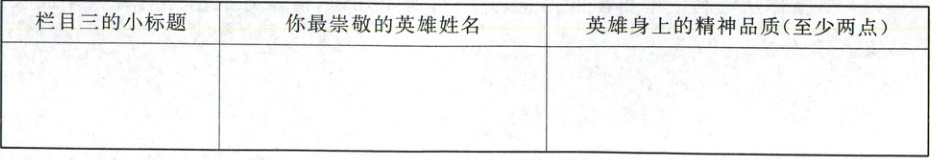 |栏目三的小标题|你最崇敬的英雄姓名|英雄身上的精神品质(至少两点)|