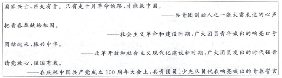 2. 百年中国共青团征程中,时代不同,青春一脉相承。如下所示,这表达出中国共青团(