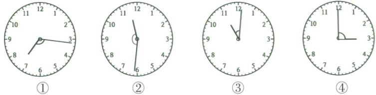 2. 观察钟面上时针和分针形成的角,比一比,填一填。(填序号)