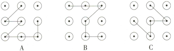 3. 妈妈手机的锁屏密码是图案密码,图案里有 2 个锐角和 1 个直角。妈妈手机的锁屏密码可能是(