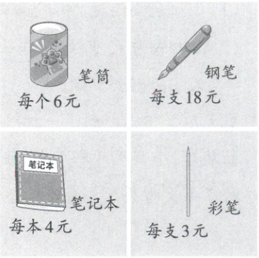 (1) 淘气买了 4 支钢笔,一共需要多少元?