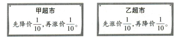 乙超市:$100× \left(1+\dfrac{1}{10}\right)× \left(1-\dfrac{1}{10}\right)=99$(元)