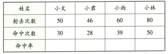 )的命中率最低。(3) 这次射击训练,运动员的整体命中率是(
