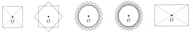 4. [自主探究题]正方形绕中心点O旋转,内部空白部分可以得到一个圆(如图)。