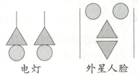 3. [教材P8变式题]下图是由两个圆、两个三角形和两条线段设计出的具有平移关系或轴对称关系的图案。请你也来设计两个有创意的组合图形,并给它们起个名字。