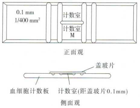 个计数室,盖上盖玻片后每个计数室的体积是0.1 mm³