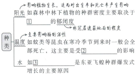 (2)春夏时节动物种群迅速增长受气温升高、食物充足等多种非生物因素的综合影响。(