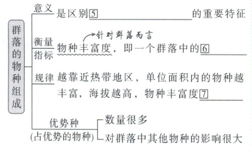 (3)不一定 在群落中数量很多,且对群落中其他物种的影响很大的物种才能称为优势种
