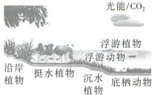 C.沉水植物、挺水植物和沿岸植物的垂直分层主要是充分利用阳光