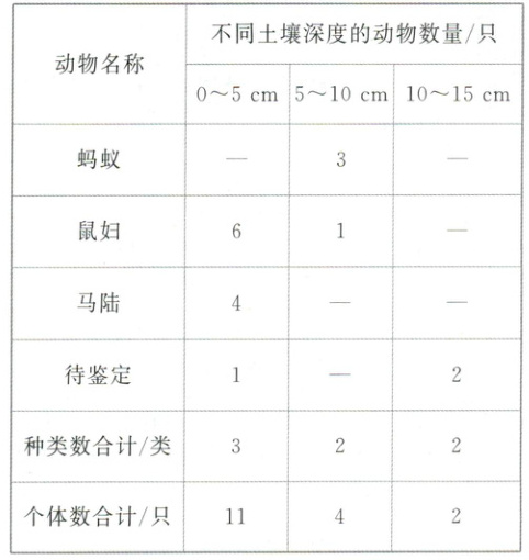 5. 某生物兴趣小组的同学对校园花圃土壤中小动物类群的丰富度进行调查,结果如下表所示。下列关于该兴趣小组的研究过程与结果分析的叙述,错误的是 ( )