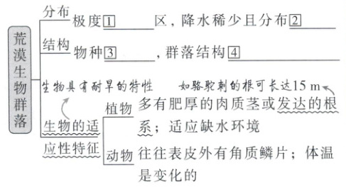 (1) 荒漠中的生物以独特的生存方式适应高温的环境。 (