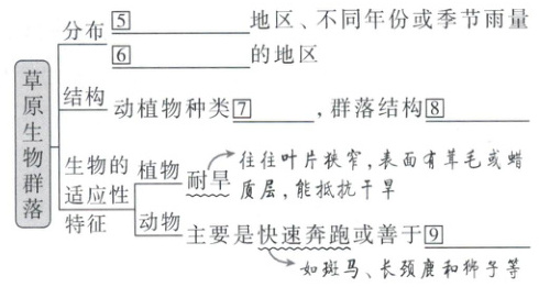 )(2) 草原上的植物往往叶片狭窄,有的表面有茸毛,与干旱环境相适应。 (