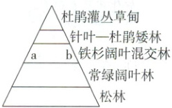 5. (2025·黑龙江部分学校高二联考) “下关风吹上关花,洱海月照苍山雪”描写的是大理著名的四大景观“风、花、雪、月”,其中雪景苍山的西坡,由山麓到山顶的群落分布如下图所示。下列相关叙述错误的是 ( )