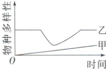 (4)下图表示甲、乙两种群落在演替过程中物种多样性的变化曲线,