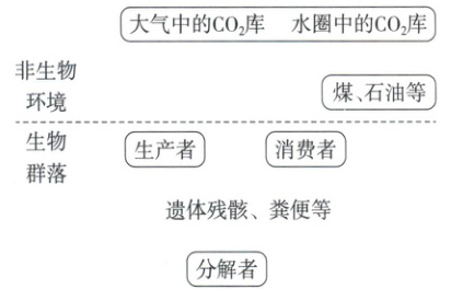 $[$探究$]$请结合碳元素在生物圈循环的形式和途径$,$用箭头、文字等补充完善下图。