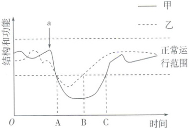 2. 两个不同的生态系统在同时受到同等强度的干扰(a)后,结构和功能的变化情况如下图所示。据图不能得出的结论是(
