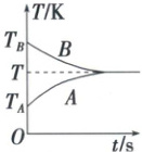 如图所示,图像表达了两个系统达到热平衡的过程,根据图像分析 $A$、$B$ 两个系统达到热平衡的条件是什么?