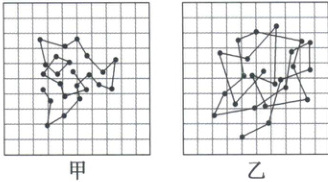例6 (2024·山东淄博一模)甲、乙图是某同学从资料中查到的两张记录水中炭粒运动位置连线的图片,记录炭粒位置的时间间隔均为30s,两方格纸每格表示的长度相同。比较两张图片可知 (